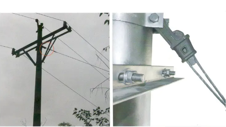 用來(lái)固定避雷線(xiàn)和桿塔的拉線(xiàn),契型線(xiàn)夾使導(dǎo)線(xiàn)受力較大